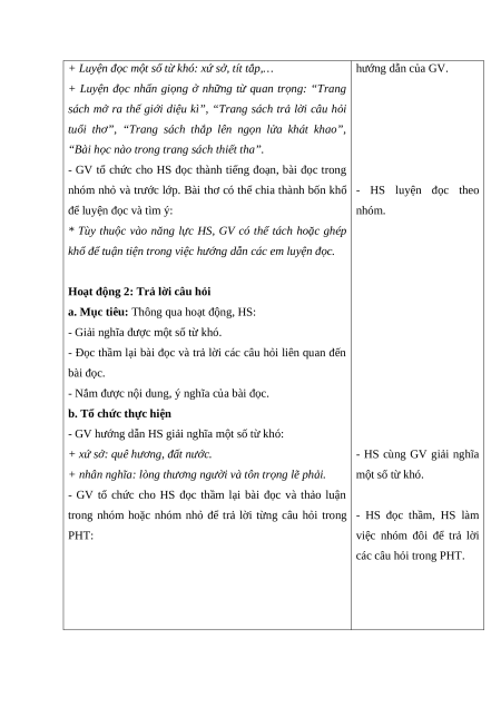 * Tùy thuộc vào năng lực HS, GV có thể tách hoặc ghép