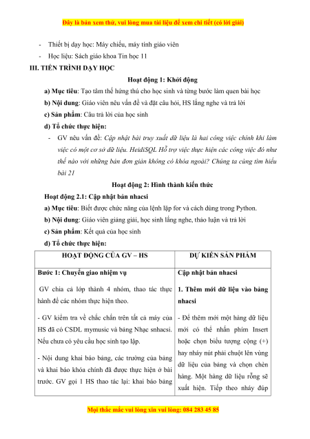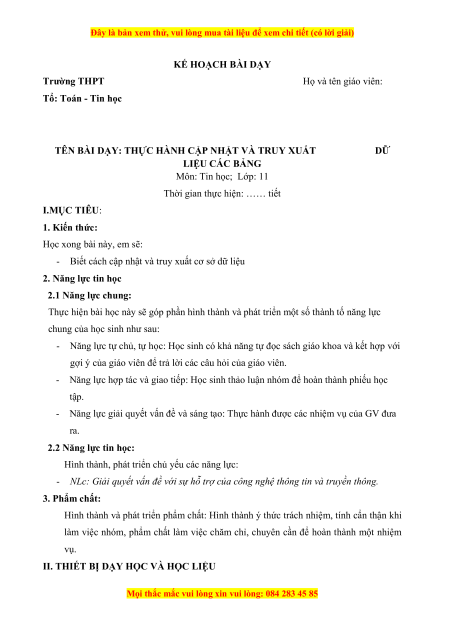 Đây là bản xem thử, vui lòng mua tài liệu để xem chi tiết (có lời giải) KẾ HOẠCH BÀI DẠY Trường THPT Họ và tên giáo viên: Tổ: Toán - Tin học