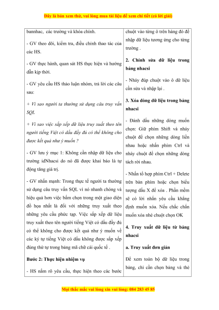 - GV nêu vấn đề: Cập nhật bài truy xuất dữ liệu là hai công việc chính khi làm