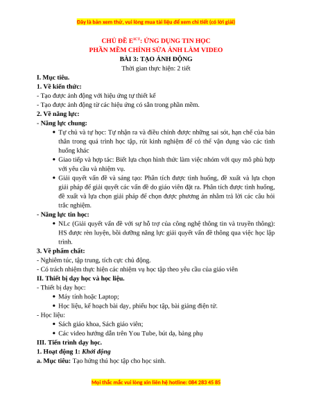 - Tạo được ảnh động từ các hiệu ứng có sẵn trong phần mềm. 2. Về năng lực: - Năng lực chung: