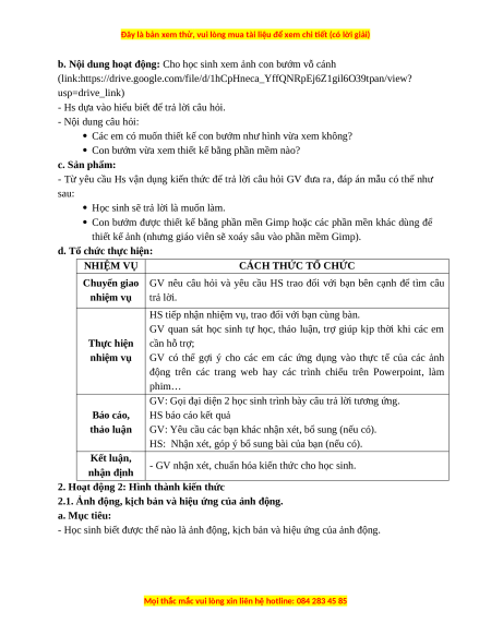 - Học sinh tạo được 1 ảnh động với hiệu ứng tự thiết kế trong GIMP b.Nội dung: