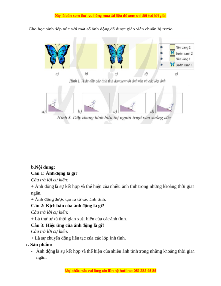 - Cho học sinh tiếp xúc với một số ảnh động đã được giáo viên chuẩn bị trước. b.Nội dung: Câu 1: Ảnh động là gi?