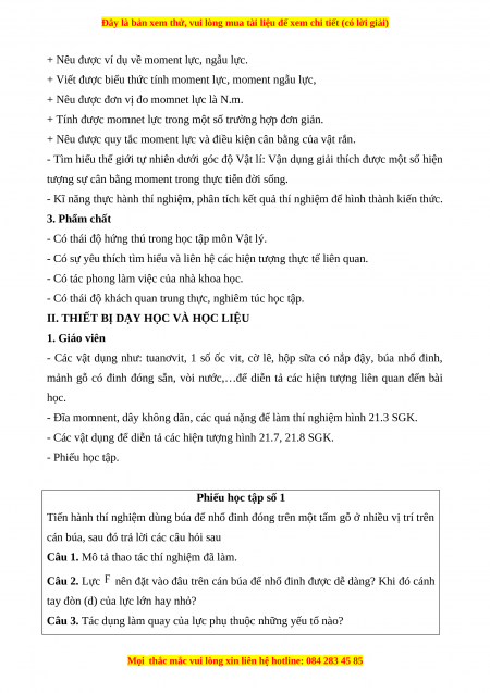 - Qua thí nghiệm, rút ra được quy tắc moment lực. Vận dụng được quy tắc moment