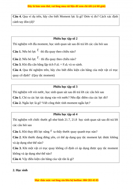 Câu 4. Vậy điều kiện cân bằng của vật rắn là gì? 2. Học sinh