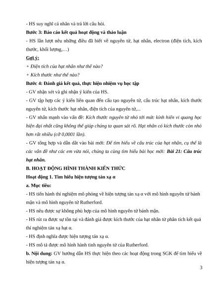 b. Nội dung: GV hướng dẫn HS thực hiện theo các hoạt động trong SGK để tìm hiểu về hiện tượng tán xạ α. 3