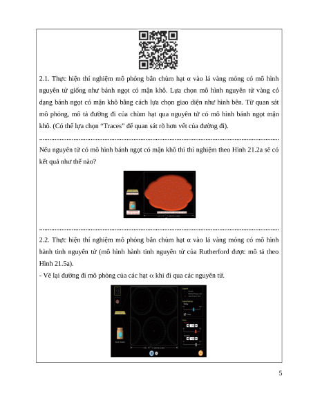 - HS tiến hành thí nghiệm mô phỏng về hiện tượng tán xạ α với mô hình nguyên tử bánh