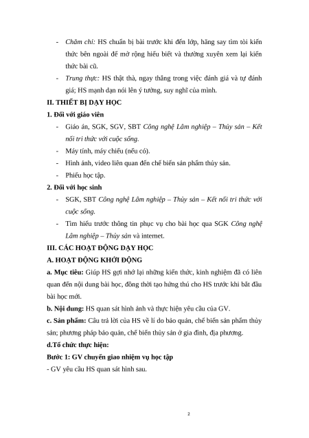 - Thực hiện được một số công việc đơn giản trong bảo quản, chế biến thủy sản. 2. Năng lực