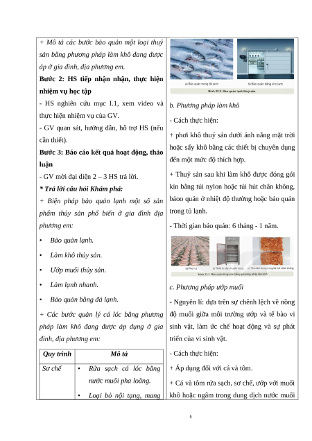 Hoạt động 1: Tìm hiểu về một số phương pháp bảo quản thuỷ sản phổ biến