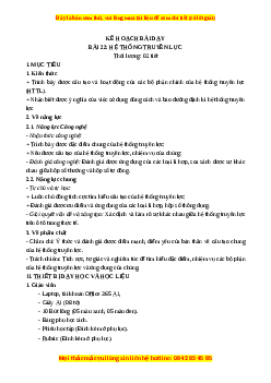 BÀI 22: HỆ THỐNG TRUYỀN LỰC Thời lượng: 02 tiết I. MỤC TIÊU 1. Kiến thức