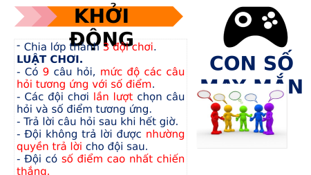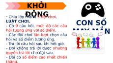 KHỞI - Chia lớp ĐỘNG thành 3 đội chơi. LUẬT CHƠI. CON SỐ