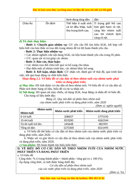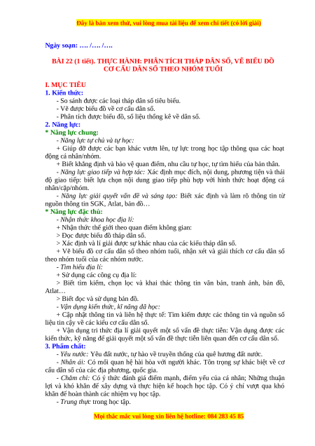 kiến thức, kỹ năng để giải quyết một số vấn đề thực tiễn liên quan đến cơ cấu dân số. 3. Phẩm chất: