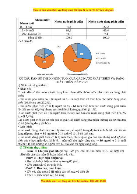 - Các nước phát triển có tỉ lệ người từ 0 - 14 tuổi thấp và thấp hơn các nước đang phát