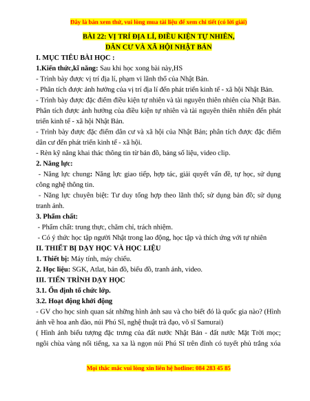 Giáo án Bài 22 Địa lí 11 Chân trời sáng tạo (2024): Vị trí địa lí, điều kiện tự nhiên, dân cư và xã hội Nhật Bản