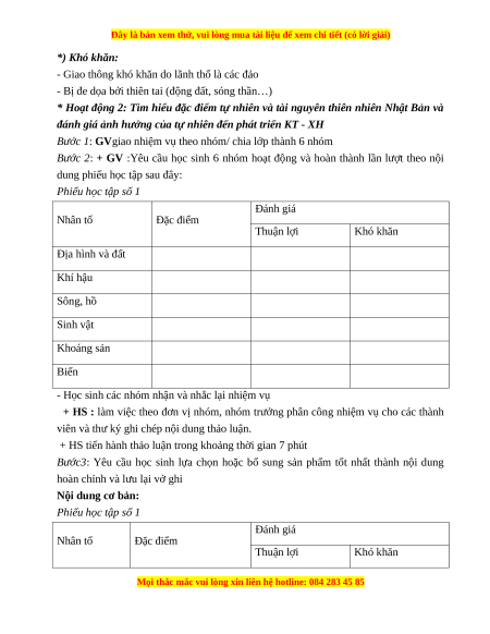 Phiếu học tập số 1 Đánh giá Nhân tố Đặc điểm Thuận lợi Khó khăn