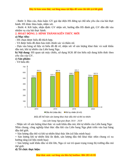 2. Học liệu: SGK, một số hình ảnh, tài liệu, video về các công nghiệp khai thác dầu khí của Liên Bang Nga.