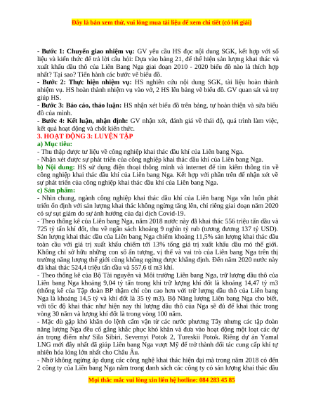 Giáo án Bài 22 Địa lí 11 Kết nối tri thức (2024): Thực hành tìm hiểu về công nghiệp khai thác của Liên Bang Nga
