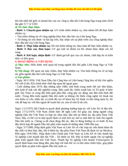 a) Mục tiêu: Hiểu được mối quan hệ trong ngành dầu khí giữa Liên bang Nga và Việt
