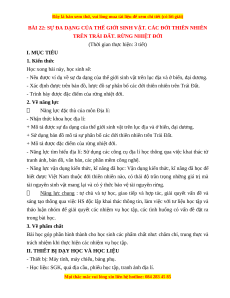 BÀI 22: SỰ ĐA DẠNG CỦA THẾ GIỚI SINH VẬT. CÁC ĐỚI THIÊN NHIÊN