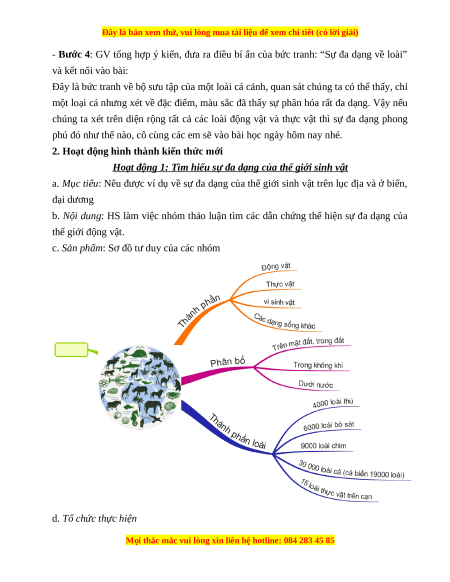 - Bước 4: GV tổng hợp ý kiến, đưa ra điều bí ẩn của bức tranh: “Sự đa dạng về loài” và kết nối vào bài: