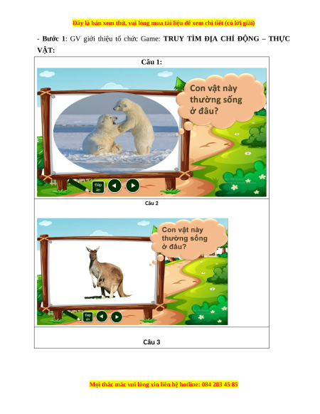 - Bước 1: GV giới thiệu tổ chức Game: TRUY TÌM ĐỊA CHỈ ĐỘNG – THỰC