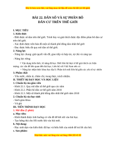 BÀI 22. DÂN SỐ VÀ SỰ PHÂN BÔ
