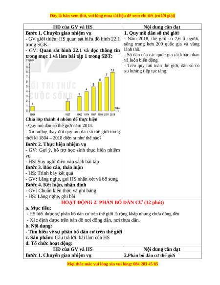 - GV giới thiệu: HS quan sát biểu đồ hình 22.1 - Năm 2018, thế giới có 7,6 tỉ người, trong SGK.