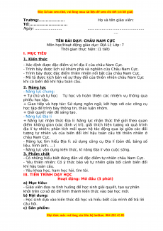 Giáo án Bài 22 Địa lí 7 Cánh diều (2024): Châu Nam cực