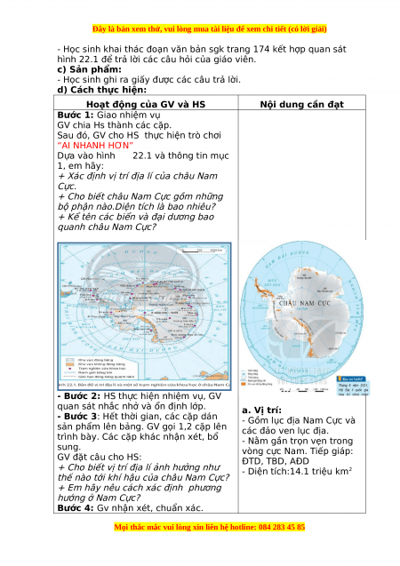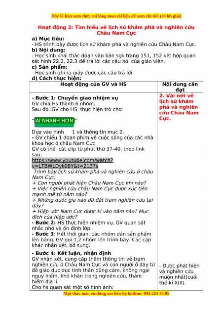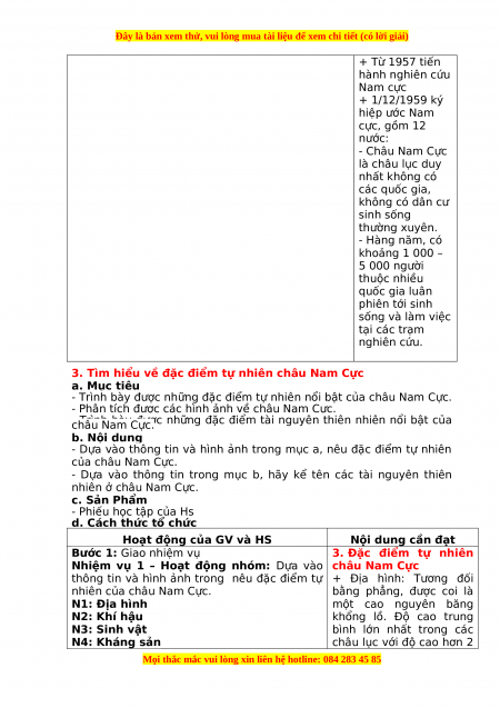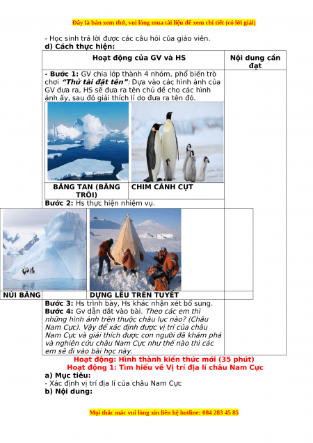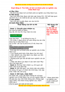 - HS trình bày được lịch sử khám phá và nghiên cứu Châu Nam Cực. b) Nội dung: