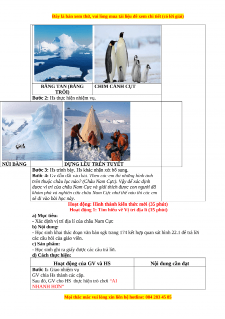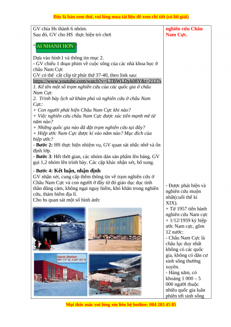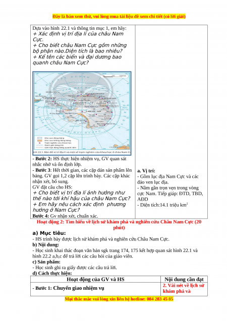 - HS trình bày được lịch sử khám phá và nghiên cứu Châu Nam Cực. b) Nội dung: