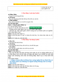 - Trình bày được lịch sử khám phá và nghiên cứu Châu Nam Cực. 2. Năng lực * Năng lực chung