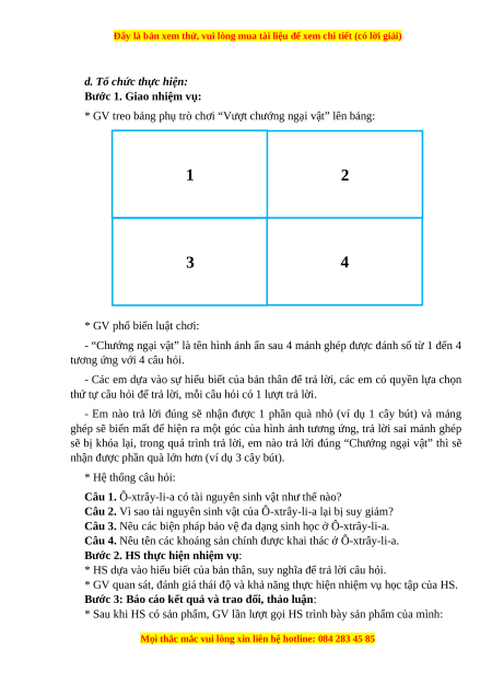 Câu 1: Ô-xtrây-li-a có tài nguyên sinh vật phong phú nhưng đang bị suy giảm.