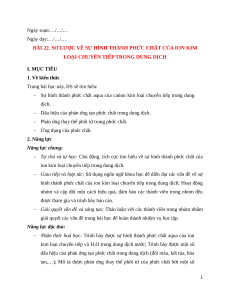 học ngày hôm nay Bài 22. Sơ lược về sự hình thành phức chất của ion kim loại