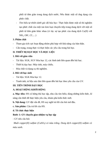 - Tự chủ và tự học: Chủ động, tích cực tìm hiểu về sự hình thành phức chất của