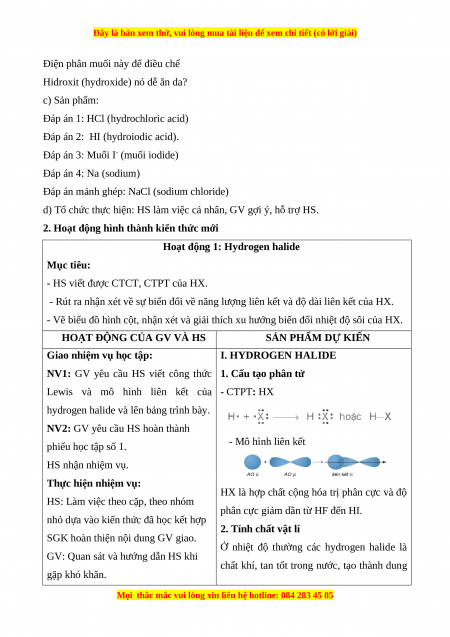 Giáo án Bài 22: Hydrogen halide. Muối halide Hóa học 10 Kết nối tri thức