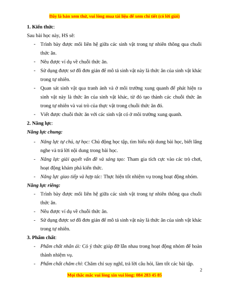 - Viết được chuỗi thức ăn với các sinh vật có ở môi trường xung quanh. 2. Năng lực: