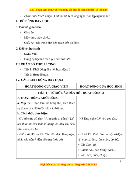 - Tiết 1: Khởi động đến hết hoạt động 2. - Tiết 2: Hoạt động 3.