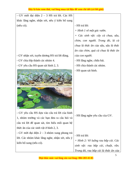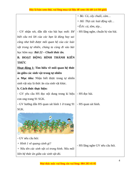 Giáo án Bài 22 Khoa học lớp 4 (Cánh diều): Chuỗi thức ăn