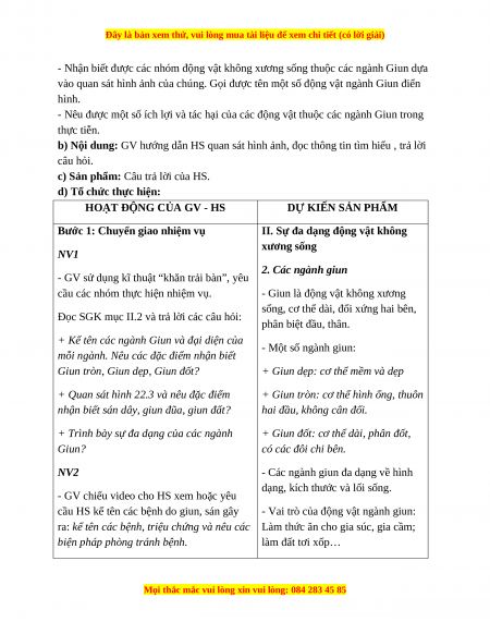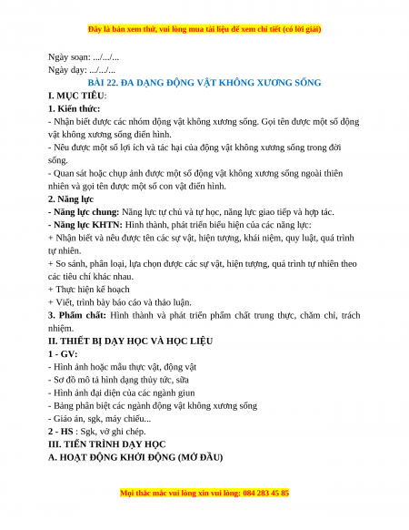 Giáo án Bài 22 KHTN 6 Cánh diều (2024): Đa dạng động vật không xương sống