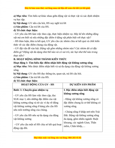 a) Mục tiêu: Nêu được điểm nhận biết và sự đa dạng của động vật không xương sống.