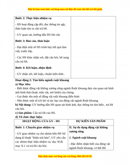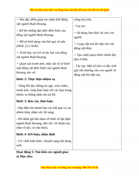 Hoạt động 2: Tìm hiểu ngành ruột khoang a) Mục tiêu: