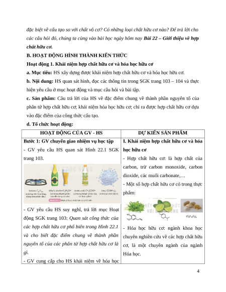 Giáo án Bài 22 KHTN 9 Kết nối tri thức (2024): Giới thiệu về hợp chất hữu cơ