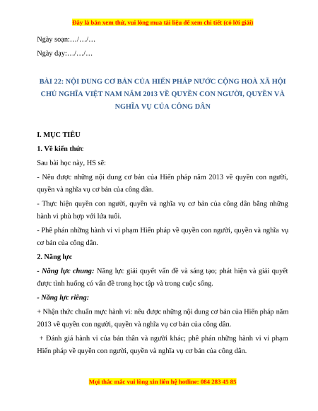 BÀI 22: NỘI DUNG CƠ BẢN CỦA HIẾN PHÁP NƯỚC CỘNG HOÀ XÃ HỘI