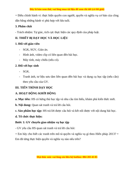 - HS chia sẻ được trải nghiệm về việc thực hiện quyền và nghĩa vụ cơ bản của công dân theo Hiến pháp 2013.
