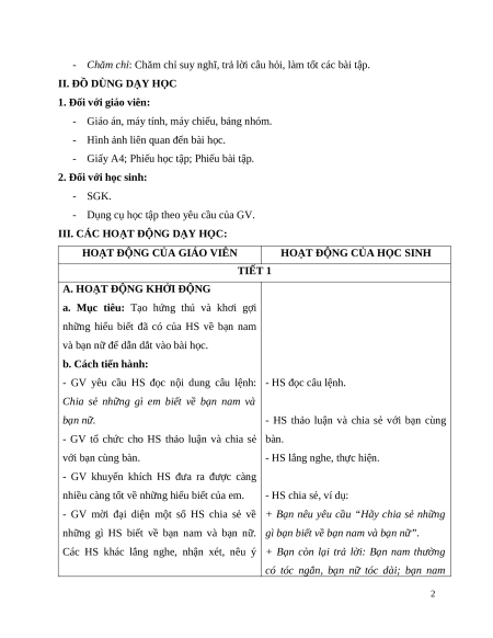 những gì HS biết về bạn nam và bạn nữ. gì bạn biết về bạn nam và bạn nữ”.