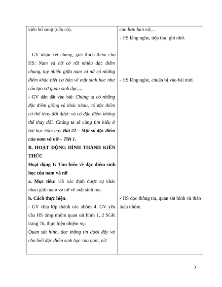 cho biết đặc điểm sinh học của nam, nữ. 3