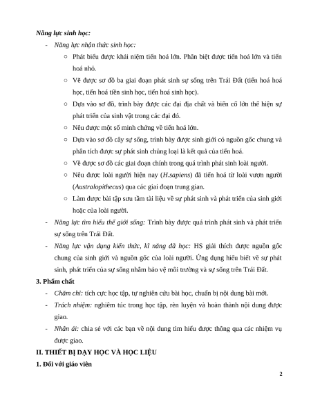 - Làm được bài tập sưu tầm tài liệu về sự phát sinh và phát triển của sinh giới hoặc của loài người. 2. Năng lực