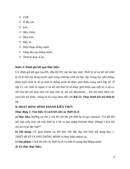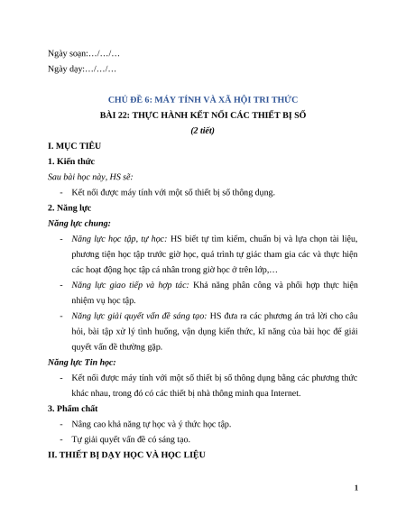 BÀI 22: THỰC HÀNH KẾT NỐI CÁC THIẾT BỊ SỐ (2 tiết) I. MỤC TIÊU 1. Kiến thức