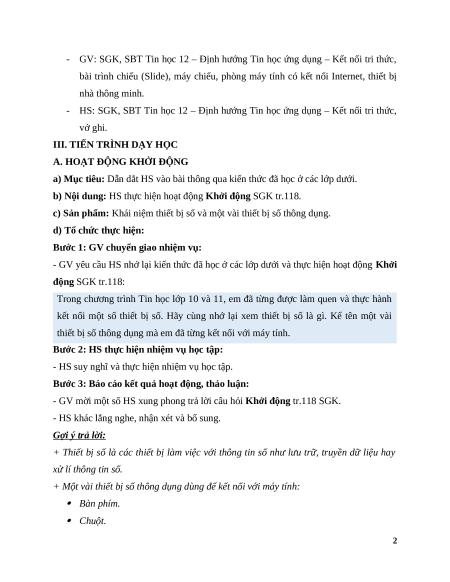 - Kết nối được máy tính với một số thiết bị số thông dụng. 2. Năng lực