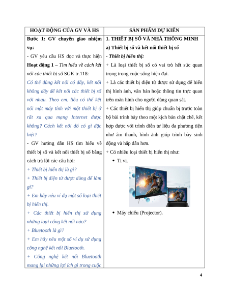 Hoạt động 1: Tìm hiểu về cách kết nối các thiết bị số