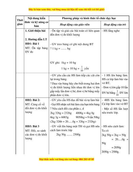 - Củng cố kiến thức về bảng đơn vị đo khối lượng. 2. Kĩ năng.